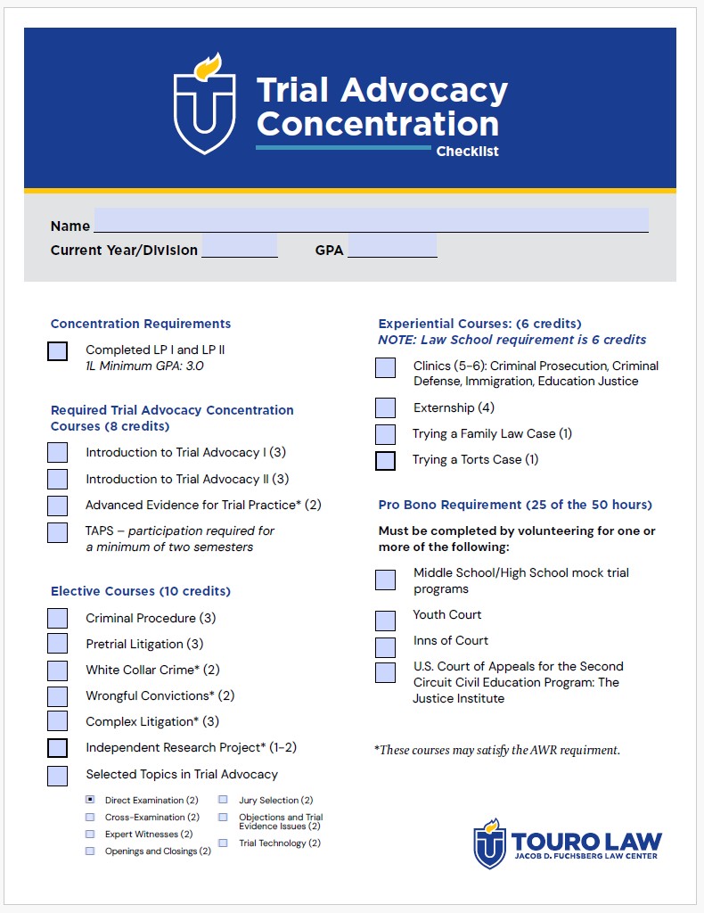 Check out our Trial Advocacy Concentration Checklist.